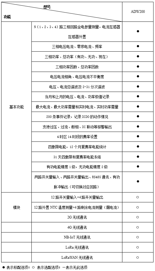 ADW2xx系列導軌式多回路電力儀表方便用戶進行用電監測、集抄和管理。可靈活安裝于配電箱內,實現對不同區域和不同負荷的分項電能計量,統計和分析。訂貨范例: