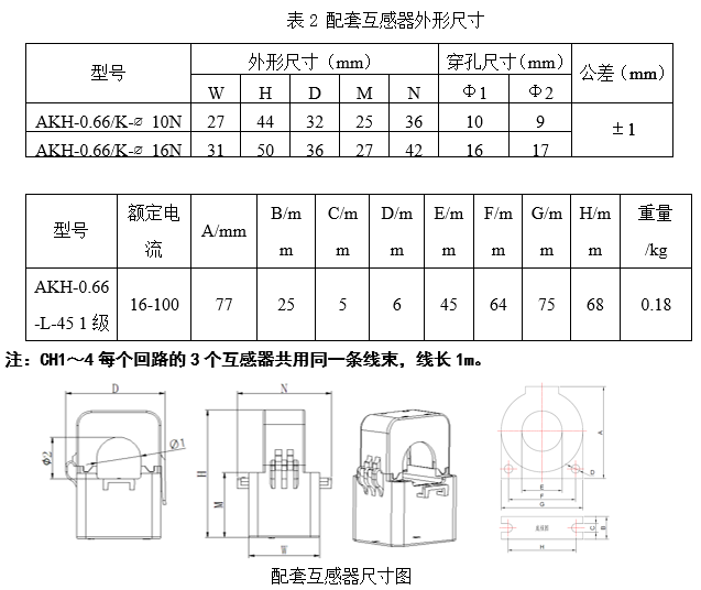 配套互感器外形尺寸: