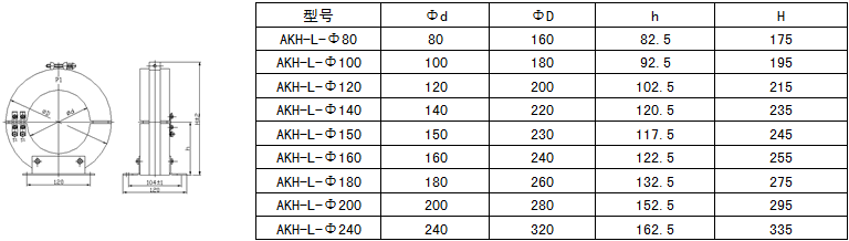 具體型號(hào):AMZK52 150A/5A● AKH-L零序電流互感器