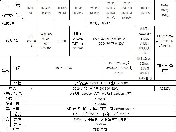 | 電壓隔離器 | BM-DV/IS | 將直流電壓信號隔離變為4-20mA輸出 | 二線制 |