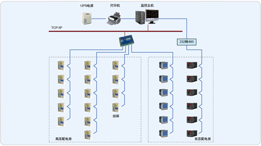 2、電能管理功能:實現電能的分級管理理念,即總表讀數應與供電局收費表讀數一致,各分表用電凈值和與總表一致等,在界面上直觀體現;完成對各回路的電能集抄功能,并自動生成符合客戶管理需求的收費報表,所有報表和圖表支持查詢打印功能;