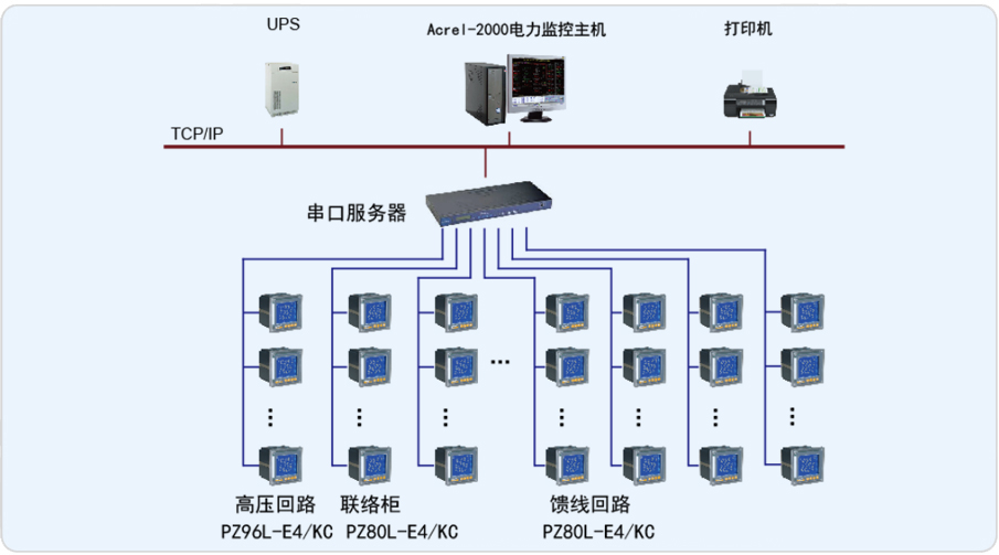 安科瑞電氣股份有限公司于2012年9月承接了現(xiàn)代海門制藥電力監(jiān)控系統(tǒng)的設計與實施。系統(tǒng)采用Acrel-2000電力監(jiān)控系統(tǒng),實現(xiàn)了對高壓配電回路安裝的安科瑞PZ96L-E4/KC儀表及低壓進線、聯(lián)絡、饋線回路安裝的PZ80-E4/KC儀表進行遠程監(jiān)測,整個系統(tǒng)采用分層絡分布式結構,實現(xiàn)了對海門制藥用電運行的遠程監(jiān)控和集中管理。