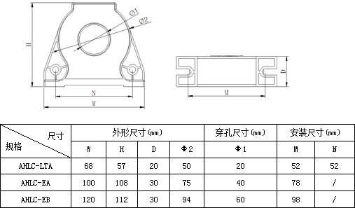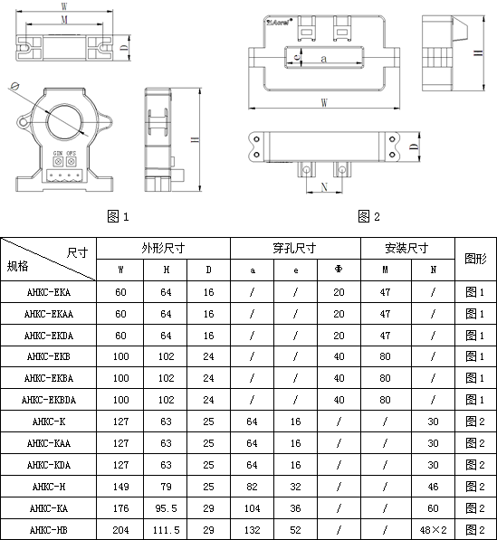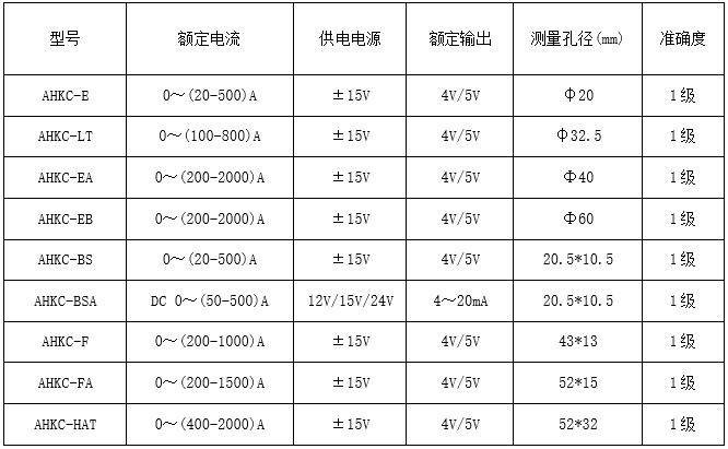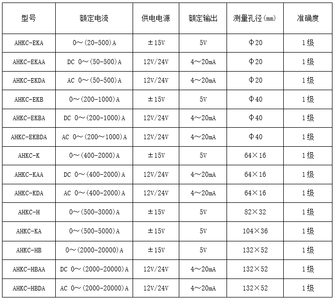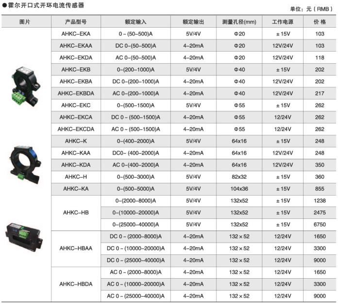 具體型號(hào):AHKC-EKAA DC300A/4-20mA● 開口式開環(huán)霍爾電流傳感器