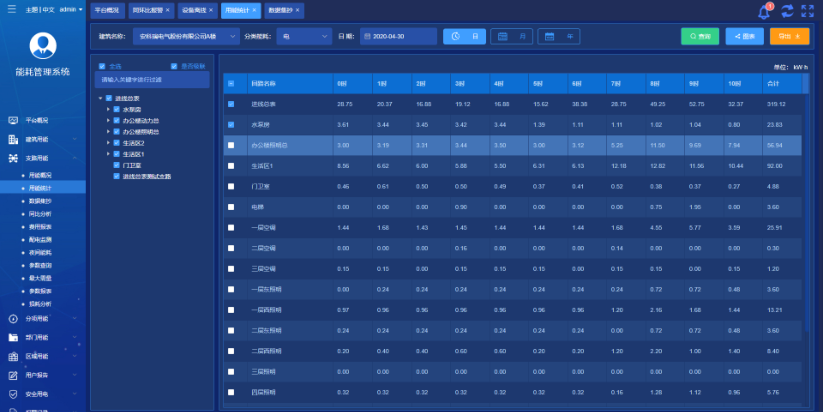 按照分項(xiàng)/區(qū)域/部門等不同的組織方式進(jìn)行報表統(tǒng)計與展示,方便用戶從多個維度使用用能報表。