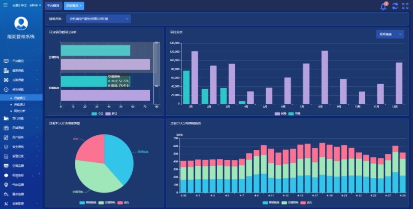 提供能耗分析報告功能,從多個維度統(tǒng)計分析用戶能耗使用情況。報告可以提供同環(huán)比分析、復(fù)費(fèi)率電量和電費(fèi)分析、能耗排名分析、報警情況統(tǒng)計等功能。
